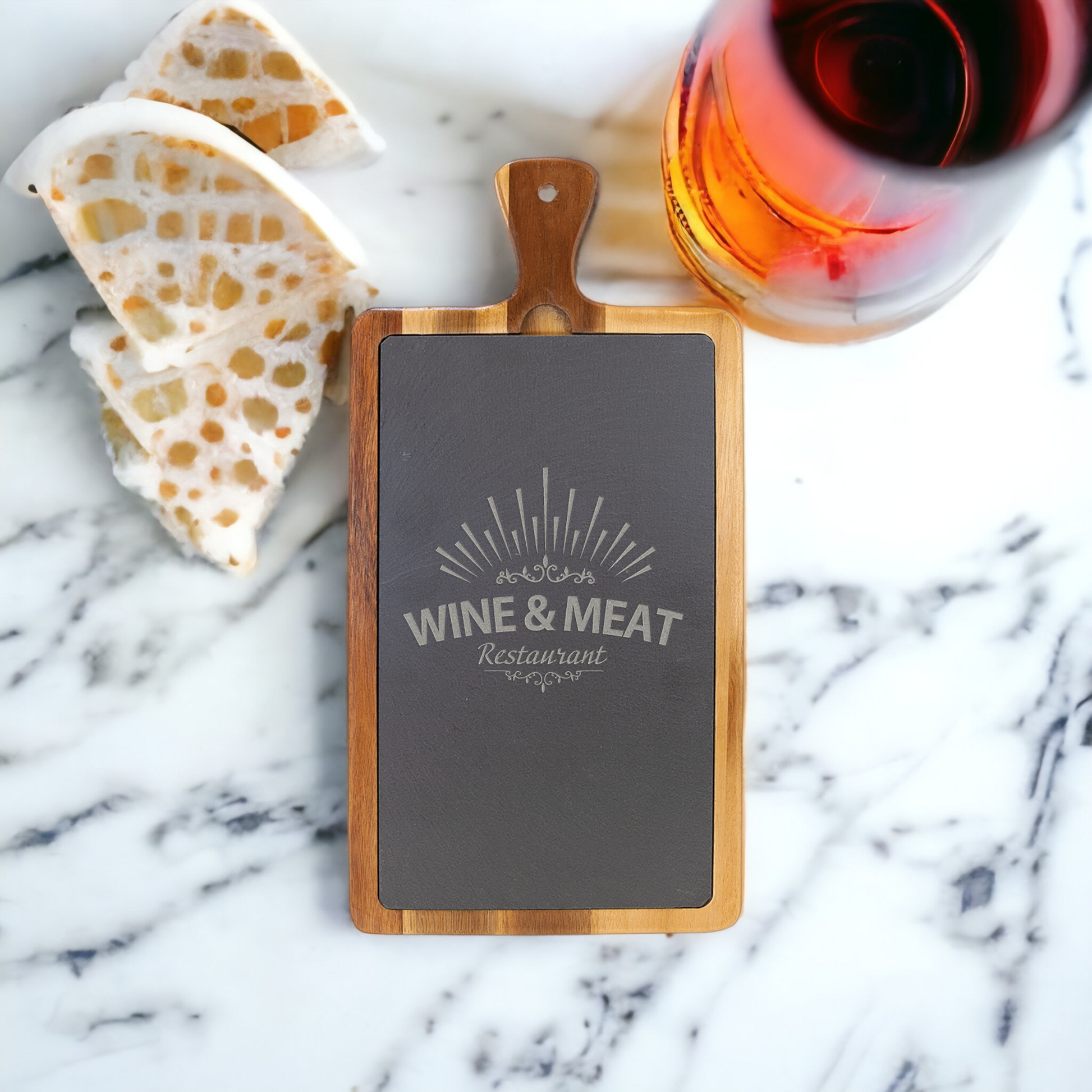 Cut your culinary masterpiece with style with these custom engraved ACADIA Wood/Slate Cutting/Serving Boards! Crafted from Acadia wood and featuring slate inserts and tools, this board will be the envy of any cooking enthusiast. Plus, your board can be personalized with custom engraving on the slate! (How cool is that?!).